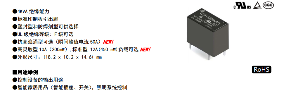 - 触点负载250VAC